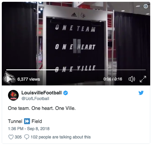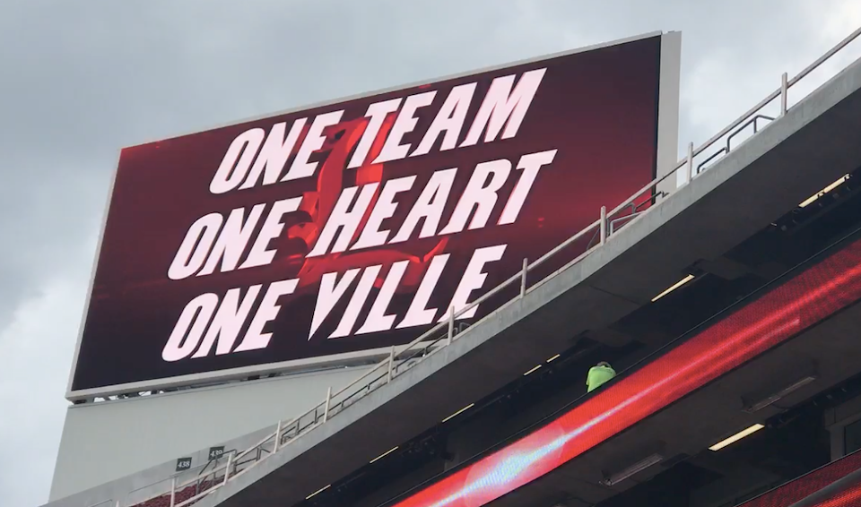 I worked with the awesome team at Archrival to help breathe new life into the University of Louisville football team’s game-day intro for adidas. The exciting and energizing spectacle featured lights, music, visuals and messaging in line with the concept of “Heart of a Cardinal.” Much of the copy throughout the experience featured three-line messaging as a nod to the adidas “three stripe life” while also playing into the notions of “heart” and the team’s pillar of speed. The line “One Team / One Heart / One Ville” became the hero messaging of the intro, and was also leveraged by the team for recruiting and social media posts to kick off the season. This was a fun one!